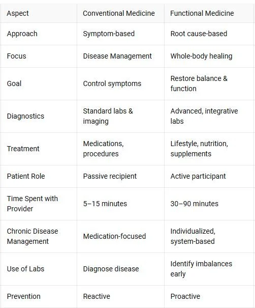 That’s a great question. Traditional medicine often focuses on symptom management and short appointments due to time constraints and insurance models. I take a different approach.